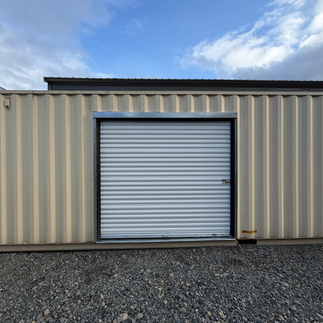 20ft and 40ft high-cube containers upgraded with custom side garage doors. Functional, secure, and built to work on the coast.